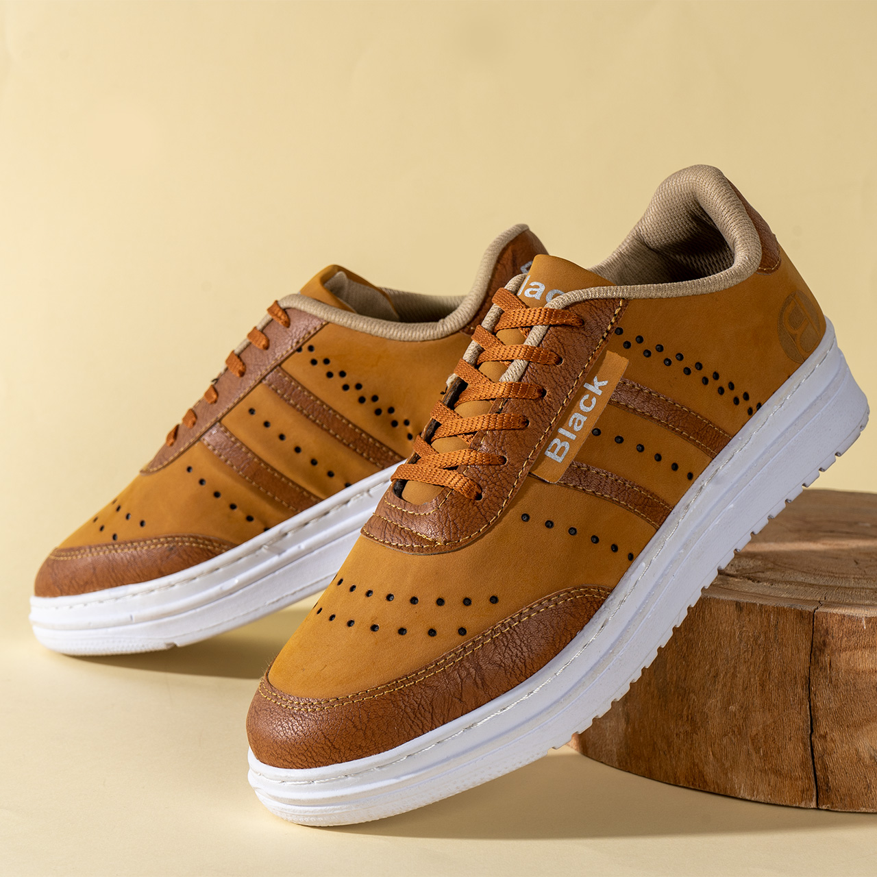 کفش تخت مردانه عسلی زیره سفید مدل Black